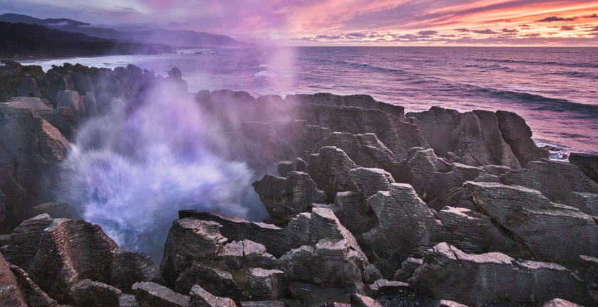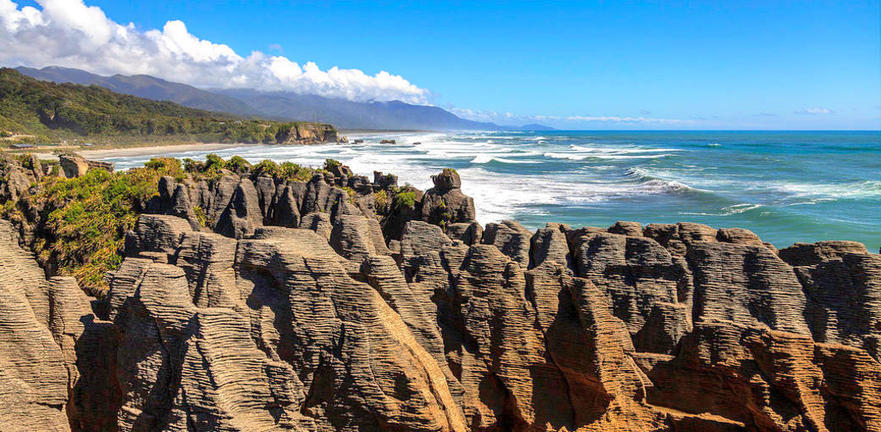 The Great Coast Road as one of the Top 10 Coastal Drives in the world! Drive alongside the ancient limestone cliffs of Paparoa National Park. Go underground rafting at Charleston, caving at Fox River and visit the famous Pancake Rocks and Blowholes at Punakaiki. Stop at Cape Foulwind (with a short walk to the seal colony), before you travel inland along the mighty Buller River. Arrive in the beautiful Abel Tasman region in the late afternoon.