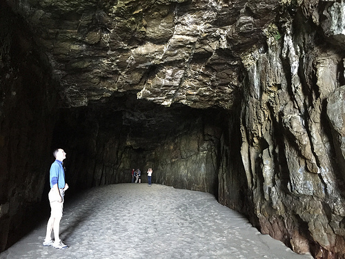 After the waterfall, drive on to the beautiful Cathedral Caves. These caves are located on privately-owned Maori land, so there is a small entrance fee. This fee helps to maintain the road leading into the carpark. There is a 20 min walk through a podocarp and Kamahi forest. The forest walk suddenly opens out to reveal a beautiful beach.
