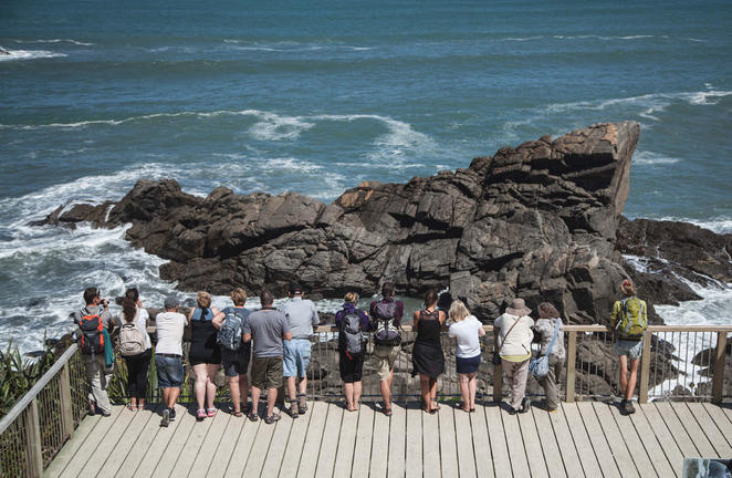 The tiny township of Punakaiki on the West Coast of New Zealand's South Island is primarily used by visitors as a base for exploring the nearby Paparoa National Park. The park is best known for its dramatic blowholes and the distinctive Pancake Rocks. These picturesque limestone formations look curiously like stony stacks of pancakes which funnel blasts of water up to 15 m into the air as the waves crash into the caverns below the rocks. Visitors can explore the sub-tropical rainforests, horse ride along the spectacular coastline, paddle a canoe down the tranquil Pororari River, or climb the remarkable limestone formations for which this area is known. The town itself offers some delightful cafes and restaurants and is home to a small community of quirky local craftspeople including jewellers, carvers, painters and potters. This little town is the perfect place to take some time out between excursions into one of the West Coast's most beautiful and untouched wilderness areas. Note, Punakaiki has no supermarket, no petrol station and limited restaurant facilities.